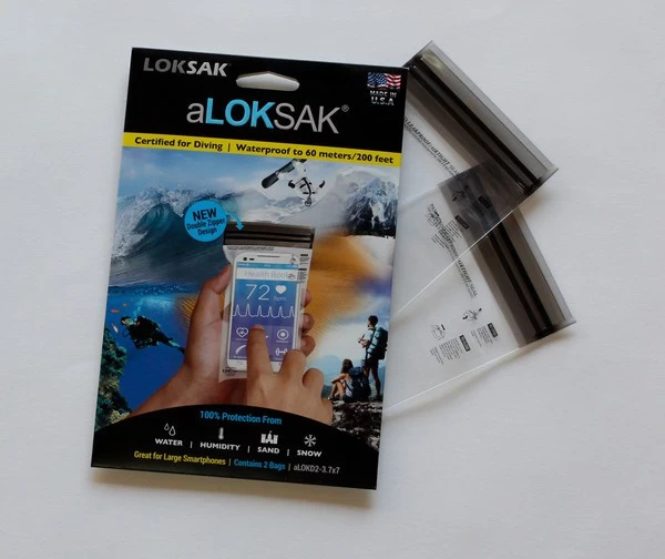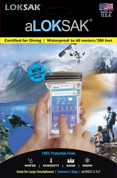 Lot de 2 sachets étanches à zip Aloksak. Référence ALOKD2-3.7X7 – Dimensions externes : 9,53 x 17,18 cm. Pochettes hermétiques pour smartphone.