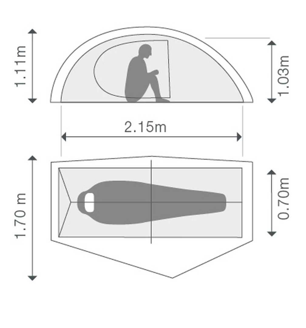 Montage : rapide grâce aux gaines d’arceaux traversantes disposées dans la tente intérieure. Système de haubans et de tendeurs permettant de bien régler la tension de la tente. La tente intérieure peut-être montée seule (par temps chaud). Le double-toit est ensuite fixé aux sangles colorées de la tente intérieure au moyen des raccords rapides. Combinée avec le double-toit et les arceaux, le tapis de sol (footprint vendu en option) peut être utilisé en mode « tarp » ou comme protection sommaire contre les intempéries.