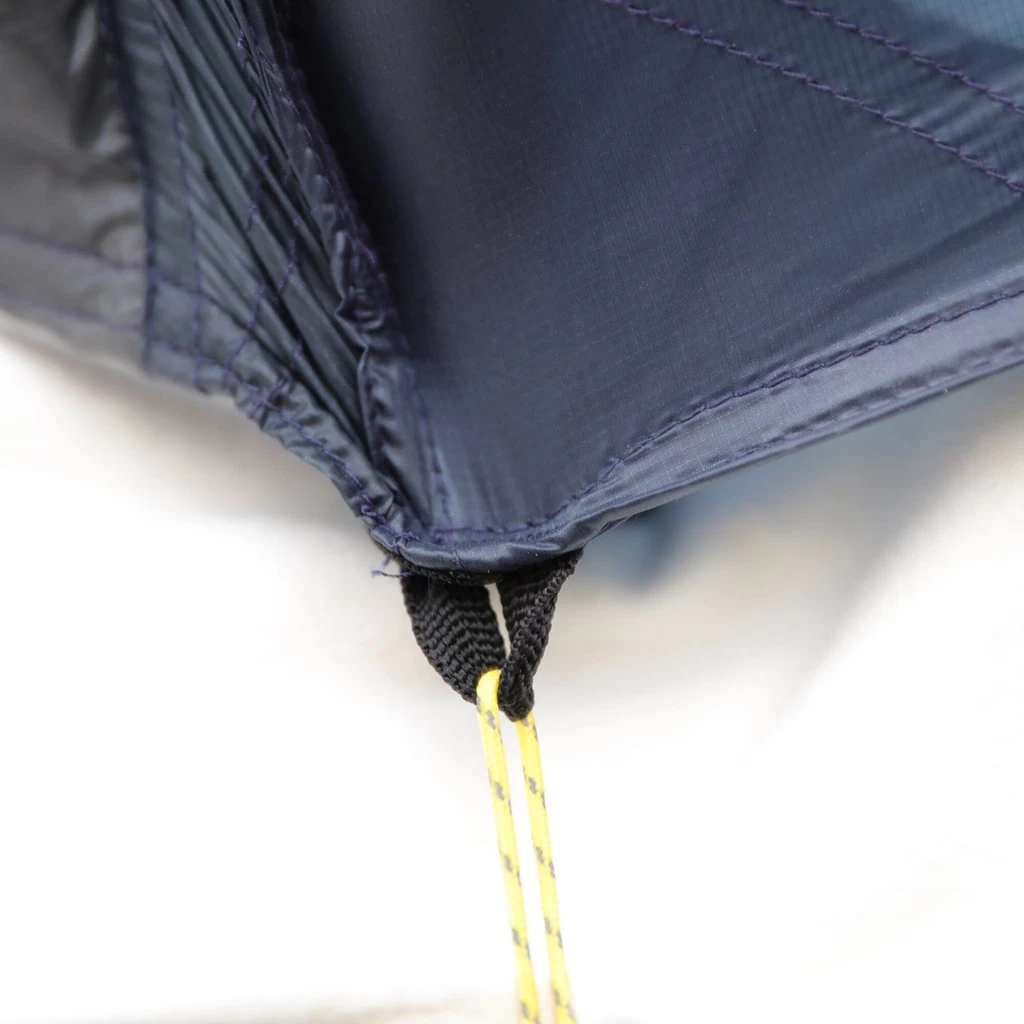 Des aérations sur les flancs et une partie de la porte d’entrée en moustiquaire facilite la ventilation et diminuent la condensation. L’air passe mais pas les moustiques ! Même si la tente est légère, elle reste stable dans des conditions venteuses. Sa forme permet une bonne résistance au vent et réduit les bruits de vibration du tissu.