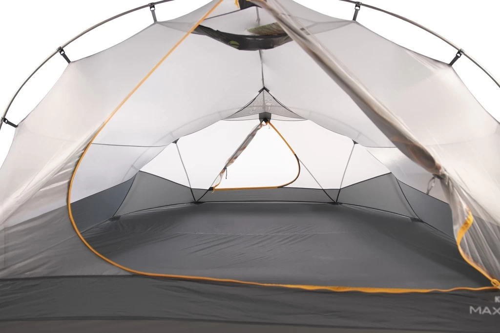 L’habitacle intérieur dispose d’une surface au sol suffisante pour entreposer 4 matelas de taille standard. Les murs en tissu moustiquaire donnent une sensation d’ouverture vers l’extérieur d’autant qu’il est possible d’escamoter l’abside pour profiter de la vue. La hauteur sous toit est confortable : 113 cm.