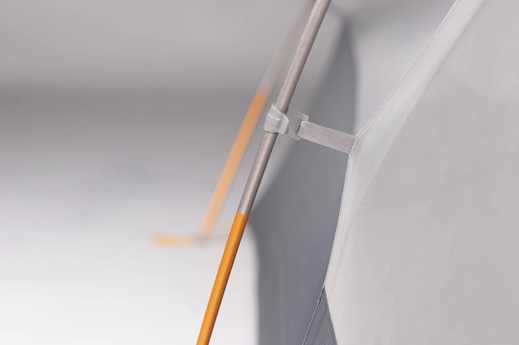 Cette tente dispose de trois fenêtres d’aération favorisant la circulation de l’air. Les points d’ancrage par haubans stabilisent la tente et la rendent résistante au vent.