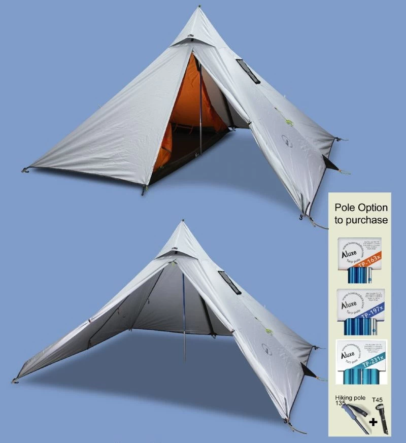 Ce tipi léger est optimisée pour dissiper le vent, la pluie et la neige et offrir une grande protection face aux intempéries. Le montage est simple et s’effectue à l’aide d’un mât central (vendu séparément).
