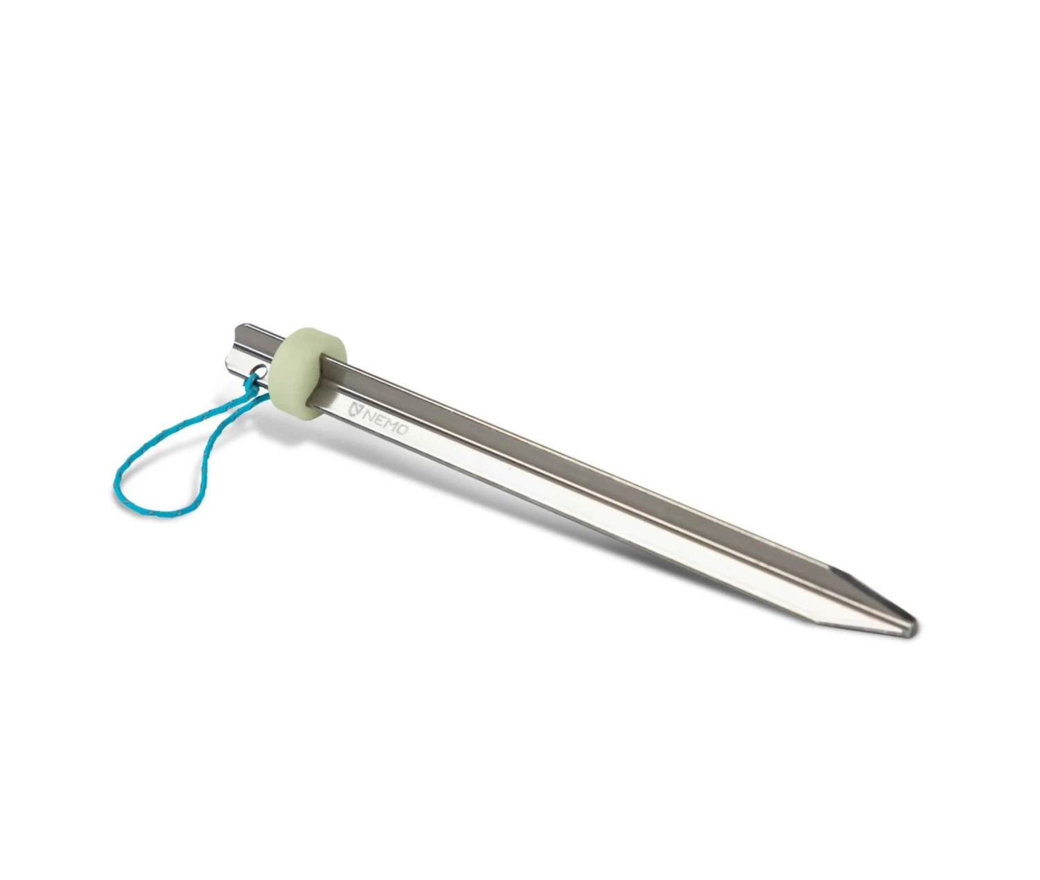 Le Sweepstake de Nemo Equipment est un piquet de tente qui résout de petits problèmes avec des solutions simples. D’abord, c’est une sardine en aluminium en forme Y qui se plante facilement dans tous les types de sols. Le petit curseur luminescent vous permet non seulement de visualiser le piquet dans l’obscurité, mais sert également de nettoyant intégré. En effet, le curseur glisse simplement le long du corps de la sardine afin d’éliminer la saleté, la boue et les particules incrustées sur la surface de l’aluminium. Cela signifie, que votre sac de rangement ne sera pas plein de sable ou de terre après le premier bivouac.