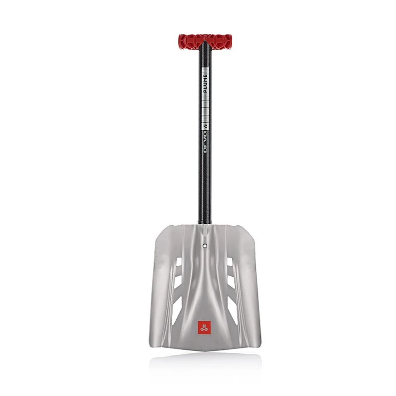 L’Arva Plume est une pelle extrêmement légère et compacte composée d’un manche en carbone et d’un godet en aluminium. Le manche a une poignée en forme de T qui facilite la prise en main et le pelletage. L’anodisation du godet évite à la neige de coller par basses températures. Les rebords et la découpe de la pelle sont dessinés pour optimiser l’efficacité du pelletage.