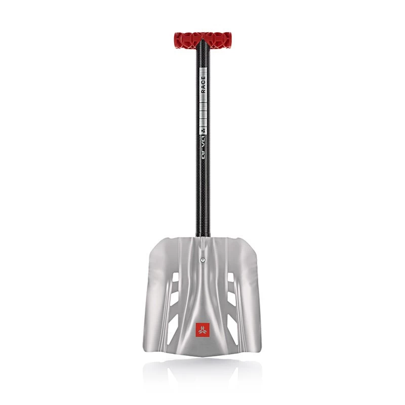 L’Arva Race est une pelle à neige ultra légère et compacte composée d’un manche en carbone et d’un godet en aluminium anodisé. La poignée en forme de T facilite la prise en main. L’anodisation du godet évite à la neige de coller par basses températures. Les rebords et la découpe de la pelle sont optimisés pour réduire son poids et son encombrement sans nuire à son efficacité de pelletage.
