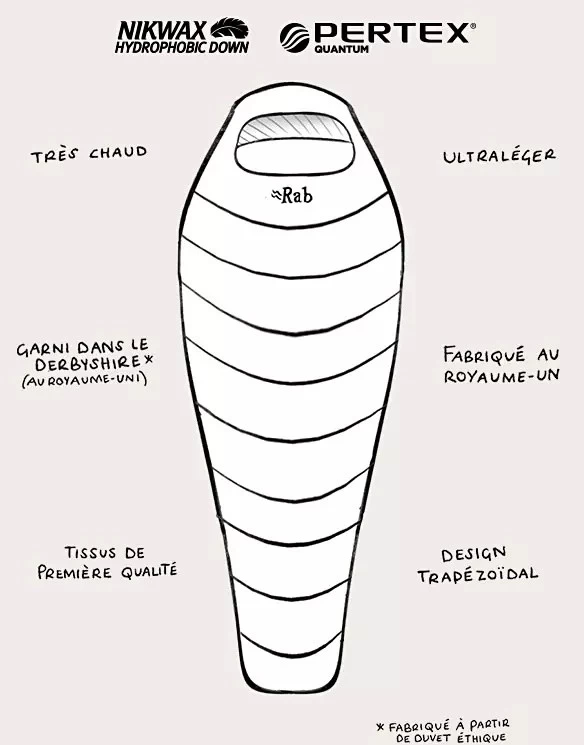 Sac de couchage 3 saisons en duvet d’oie, performant offrant un bon ratio poids/chaleur.