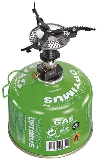 L’Optimus Crux est un réchaud gaz développant 3000 W permettant de porter à ébullition 1 litre d’eau en 3 minutes. Ce réchaud est léger et compact : la tête du brûleur se replie sur le corps du Crux. L’ensemble se glisse dans une housse de protection élastique. Le Crux dispose de pieds repliables et dentelés. Le robinet de réglage permet un réglage fin de la puissance et de la flamme.