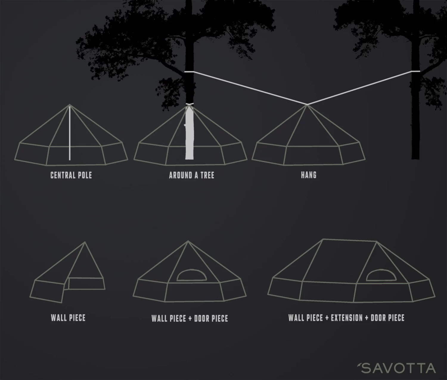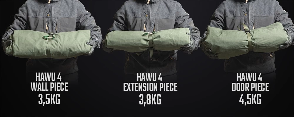 Savotta Hawu 4. Abri modulaire 4 saisons. Eléments vendus séparément. Conçu pour quatre personnes, extensible à 6 places.