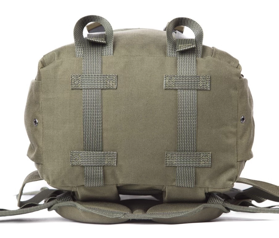 Le bas du sac à dos comporte quatre boucles de guidage pour les sangles permettant également de fixer du matériel : par exemple un matelas en mousse.