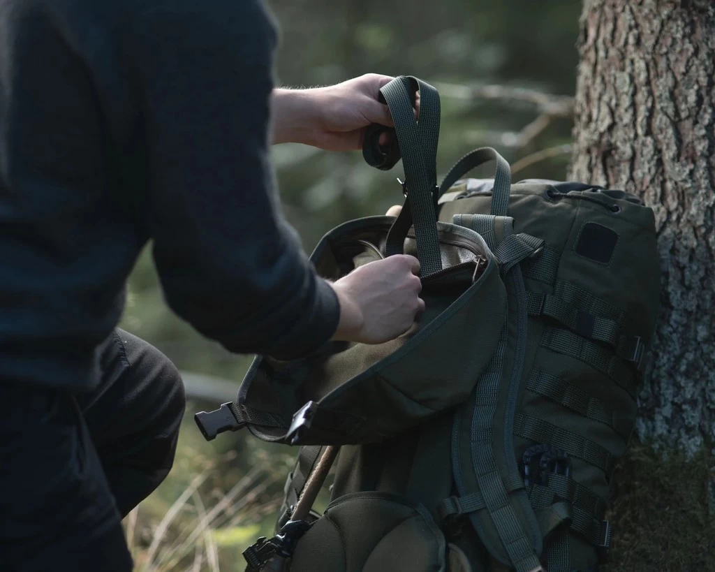 Le système d’attache MOLLE (Modular Lightweight Load-carrying) est utilisé par les armées de presque tous les pays. Il a été créé pour des conditions nécessitant une modularité et une durabilité inconditionnelles. Sur le Jääkaäri, le système MOLLE se trouve à l’avant, sur les côtés, sur le rabat et même sur les bretelles et la ceinture de hanche, ce qui offre une grande modularité. Avec le Molle, vous pouvez fixer n’importe quelle poche compatible avec cette technologie. Outre les possibilités de fixations modulaires, le Molle renforce et stabilise le sac à dos. Une boucle Molle peut supporter plus de 100 kg de poids.