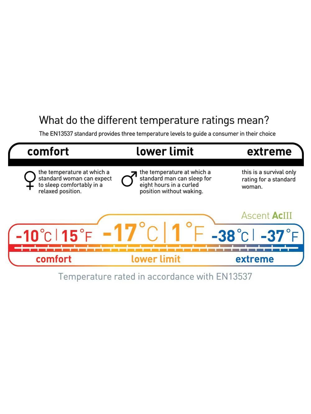 L’Ascent ACIII de Sea to Summit est un sac de couchage 4 saisons. Il n’est pas prévu pour affronter les froids les plus extrêmes ; mais avec sa température confort de -10°C, vous pourrez envisager de faire du bivouac hivernal. Vous aurez la certitude en automne ou en montagne, lorsque les températures baisseront, de ne pas avoir froid.