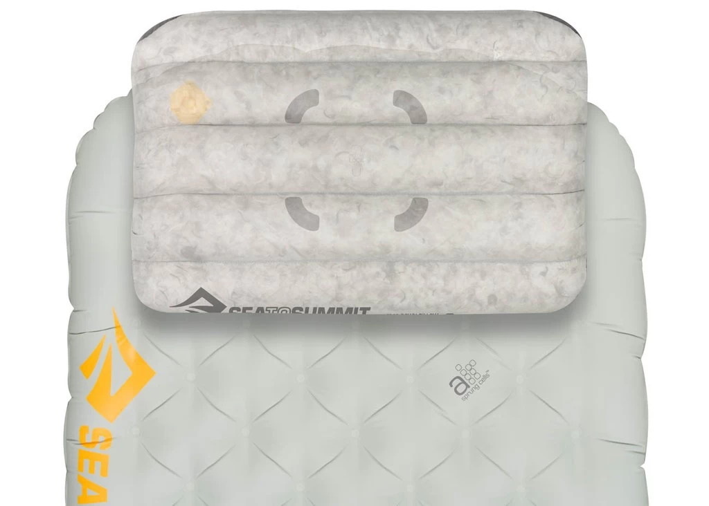 Au niveau de la tête, l’attache PillowLock permet de fixer un oreiller Aeros Sea to Summit à votre matelas pour le tenir en place toute la nuit. (Oreiller vendu séparément).