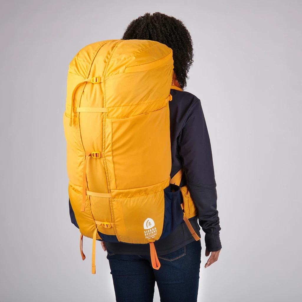 Le Flex Capacitor 60-80 de Sierra Designs est un sac à dos dont le volume est extensible ou compressible suivant ses besoins. Les sangles placées sur toute la hauteur du sac à dos permettent de faire varier son volume. Ouvert à leur maximum, vous obtenez un volume de 80 litres. Compressé, le sac à dos ne fait plus que 60 litres. Cela permet d’avoir un volume toujours adapté durant votre randonnée, lorsque la quantité de nourriture diminue au fil des jours par exemple.
