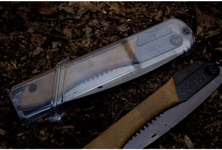 Scie pliante compacte et robuste dotée d’une lame incurvée.