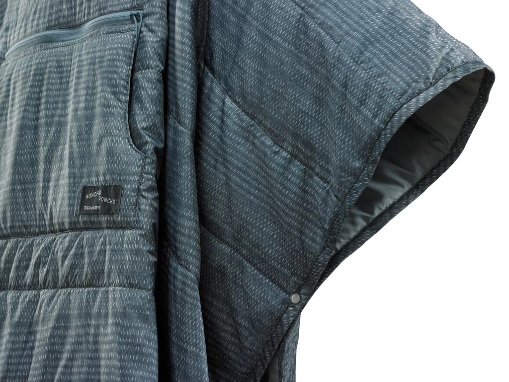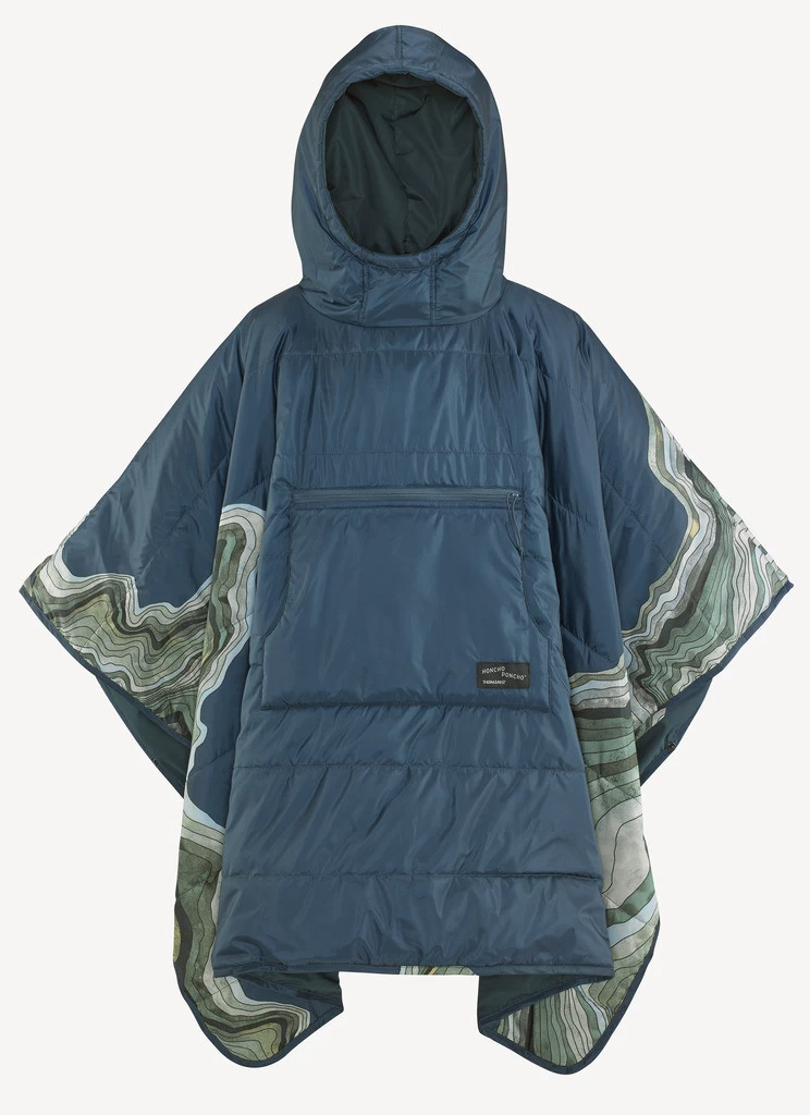 Le Honcho Poncho de Thermarest est un poncho chaud garnit d’une fibre creuse eraLoft. L’isolation synthĂ©tique compressible repousse l’eau et possède une excellente rĂ©gulation de la tempĂ©rature. Le tissu extĂ©rieur est en polyptère rĂ©sistant Ă l’eau.