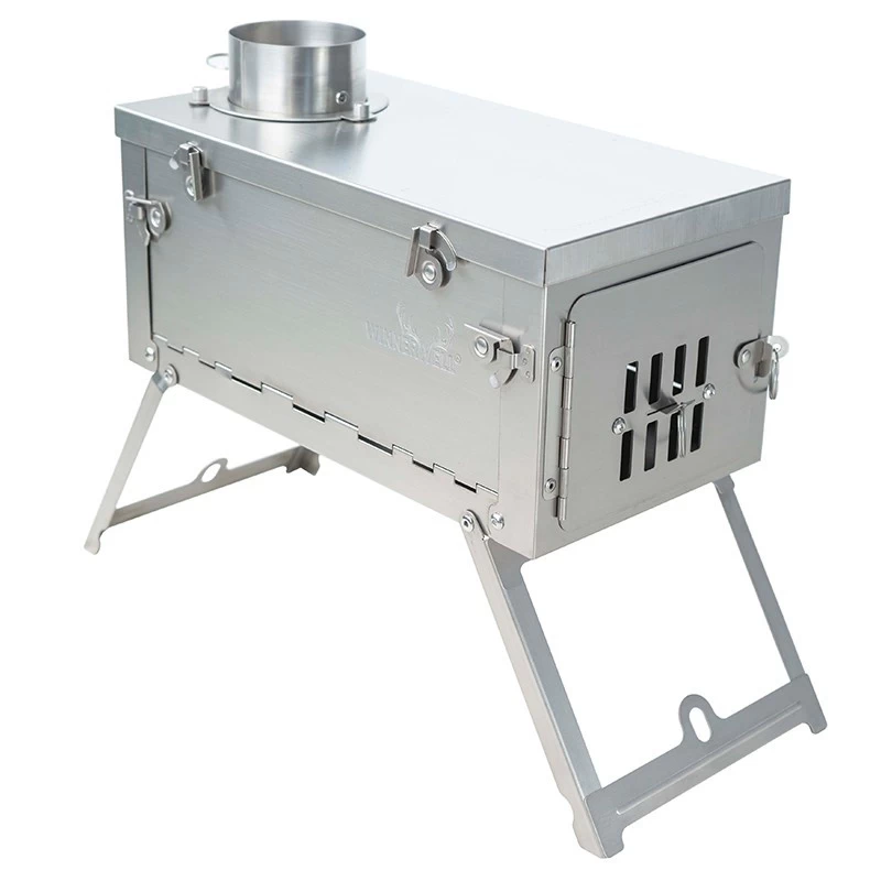 Poêle à bois en titane, léger et compact, facile à installer et stable avec son conduit rigide.
