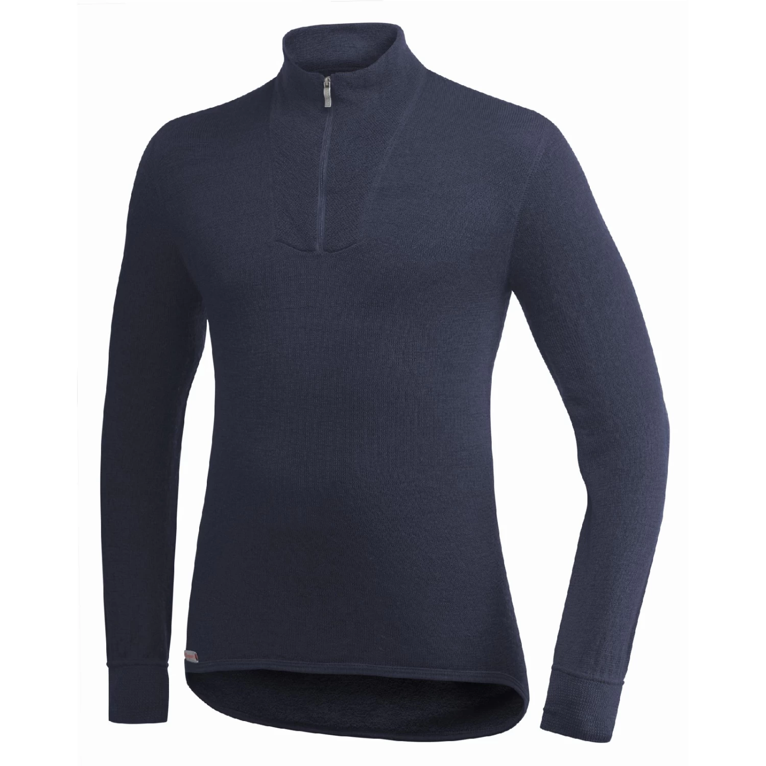 Sous-vêtement à longue manche en laine mérinos avec un col montant zippé.